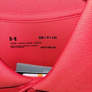 Under Armour Polo Shirt Mens size Small Loose Red Short Sleeve Heatgear 3 button