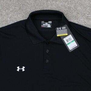 Under Armour Polo Shirt NWT Mens Large Black Heatgear Loose Fit Obama Care Logo