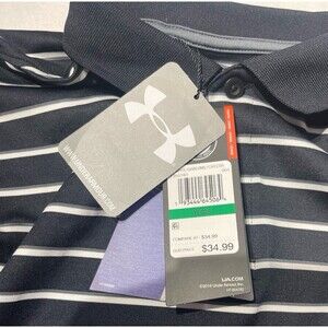 Under Armour Heat Gear Loose Fit Short Sleeve Black /White Striped Polo Shirt. Size Youth Large (14-16). New with tags. 91% polyester, 9% elastane.