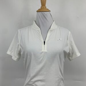 Under Armour Polo Shirt Womens XS Extra Small Bone Fitted 1/4 Zip Short Sleeve