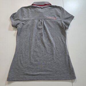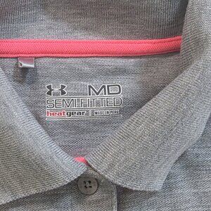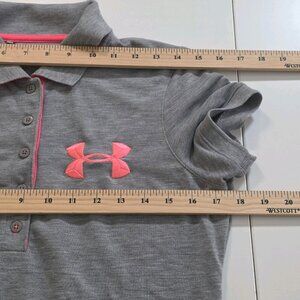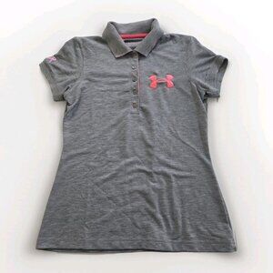 Under Armour Polo Women M Gray Pink Accents Heat Gear SS Semi Fitted Golf Active
