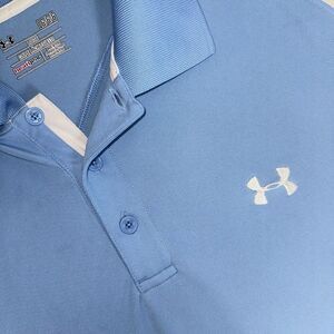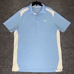 Under Armour Polo Shirt Men Large Carolina Blue Loose Heatgear Golf Short Sleeve