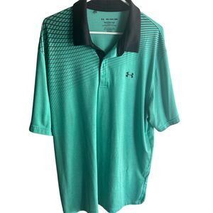 Under Armour PoloShirt Mens XXL Blue/Teal Striped Golf Performance