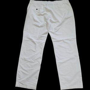 Under Armour Polyester Spandex Blend Golf Pants in Men's Size 40/32 are designed for comfort and style on the golf course. The mid-rise pants feature a flat front, straight leg fit, and stretch fabric for ease of movement during your swing. With slash pockets and a white color, these pants are perfect for casual, workwear, or travel occasions. The zip closure and logo accents add a touch of sophistication to a practical and versatile wardrobe staple. Machine washable and made of quality materials. These pants are a great choice for any season.