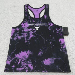 Under Armour Project Rock Iron Paradise "Do Not Go Gentle" Gym Workout Graphic Print Tank Top Black Purple