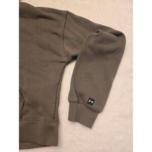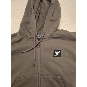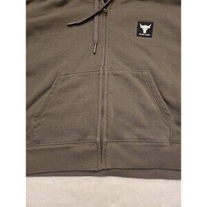 The Under Armour Project Rock Hoodie for women in size large features a stylish green color and a full zip closure with a cropped style. Made from a comfortable cotton blend material, this activewear hoodie is perfect for casual occasions and offers a hooded style for added warmth. With a chest size of 45 inches, this hoodie is machine washable and showcases the signature Under Armour Project Rock brand for quality and style.