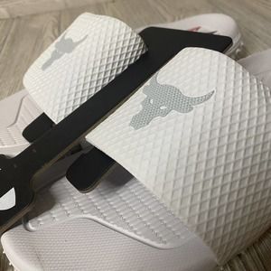 Under Armour Project Rock Logo Slide Sandals Men’s 8 White Fat Tire NWT