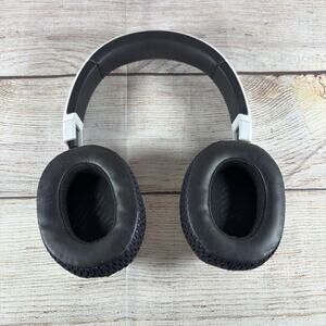 Under Armour Project Rock Over The Ear Training Headphones Only White. Headphones are tested and working. Headphones charge with a USB-C charger not included. Headphones have scuffs and markings for use. Please see all pictures for reference and condition. Listing is for headphones only. Charger and case not included.