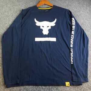 Under Armour Project Rock Shirt Mens Medium Blue Hardest Worker in the Room Gym