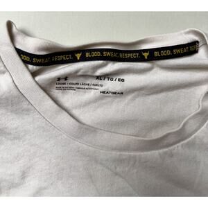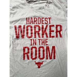 Under Armour Project Rock Shirt XL Mens White Hardest Worker in the Room Iron Paradise Goals