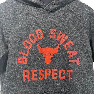 Under Armour Project Rock Short Sleeve Hoodie Mens Sz S Gray Blood Sweat Respect