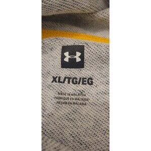 The Under Armour Project Rock Short Sleeve Hoodie Men's XL in Gray is a stylish and comfortable sweatshirt made of a polyester-cotton blend. This pullover hoodie features a solid gray color with a logo accent, a drawstring closure, and a hood for added style and functionality. Perfect for sports and gym training, this hoodie is machine washable and designed for a regular fit. The rock and sports theme adds a touch of personality to your activewear collection, making it a great choice for the warmer seasons.