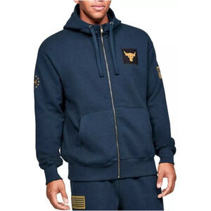 Under Armour Project Rock Veterans Day Zip Hoodie Drawstring Navy Gold Medium