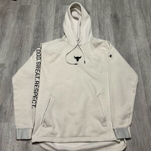 Under Armour Project Rock Hoodie Sweatshirt Mens Size Medium Blood Sweat Respect. Good condition light yellowing mark on the front very unnoticeable. Spellout on the sleeve