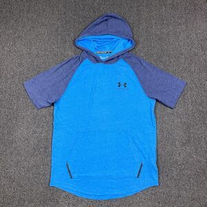 Under Armour Pullover Loose Heatgear Loose Blue S/S Hoodie Mens Size Medium