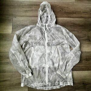 Under Armour Pursuit Rain Windbreaker Camo Clear Hooded Pockets Sporty Running in size X Large. Vented and zippered pockets. Excellent condition with no defects/smoke free home.