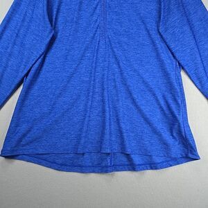 Crafted for comfort and performance, this Under Armour Quarter Zip Pullover is an ideal addition to your activewear collection. The heathered blue color, complemented by the iconic logo accent, gives it a stylish edge that stands out. Its versatile design suits a range of outdoor activities, from running and jogging to golf and tennis. Unknown logo embroidered at front. In men's size 2XL, this pullover offers a loose fit that allows for ease of movement. The blended fabric ensures durability and mild compression for your muscles during intense workouts. Long sleeves and a stand-up collar provide added coverage, making it suitable for cooler weather conditions as well. Machine washable for easy care, this pullover is a practical choice for any activity that keeps you on the move.