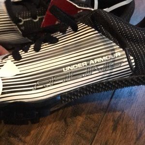 Brand new! No box. Size 7 Under Armour Racing Training Cleats. Comes with the spikes. As seen in the photos there are a few scuffs one the front of the one shoe.
