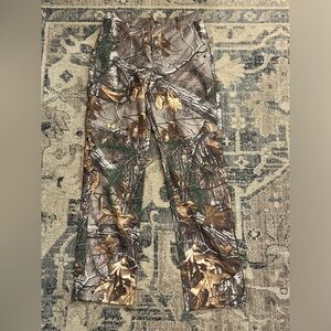 Under Armour camouflage pants with a nature-inspired design. Features shades of brown and green.
