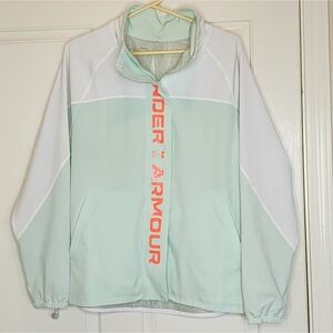 Under Armour Recover woven color block jacket, green and white, Large