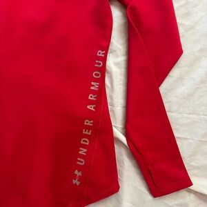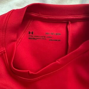 Under Armour top in bold scarlet. ColdGear technology for warmth.