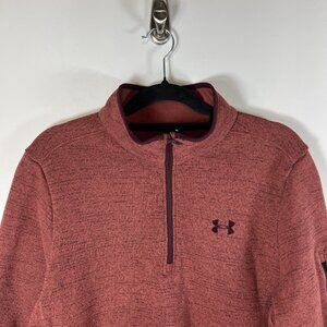 Under Armour Red Orange Men's Large Quarter Zip Fleece Lined Top Athletic Warm