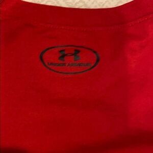 Under Armour Red Heat Gear Boys Short-Sleeve Tee. Black & grey logo across. Size YS. Gently worn. Made of polyester.