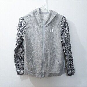 Under Armour Rival Gray Full Zip Active Hooded Sweatshirt, Girls Youth Large