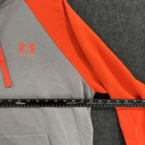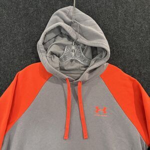 Under Armour Rival Hoodie Men's Large Gray Orange Fleece Colorblock Kangaroo