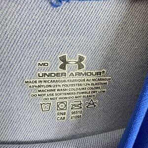 Excellent preowned condition. Under Armour Royal Blue Long Sleeve Mock Neck Athletic Base Layer. Nylon/polyester/elastane material. Approx. measurements: Shoulder to hem 25", pit to pit 16", sleeve from neck to sleeve hem 27". Women's Size M.