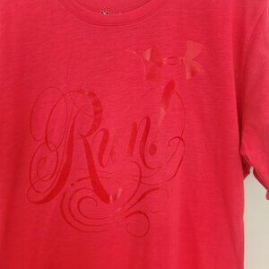 Under Armour “Run” Graphic T-Shirt Pink/Red Heatgear Loose Womens Large