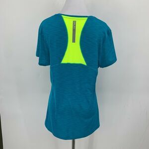 UNDER ARMOUR RUNNING T SHIRT WOMEN SIZE L BLUE SHORT SLEEVE BREATHABLE QUICK DRY