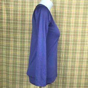 Features: a semi fitted purple long sleeve shirt that is great for athletic wear!