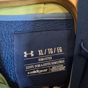Under Armour Semi-Fitted Hooded Sweatshirt XL Blue Green Drawstring Cold Gear