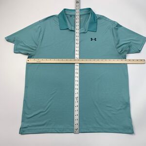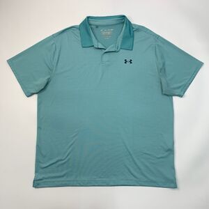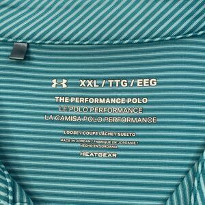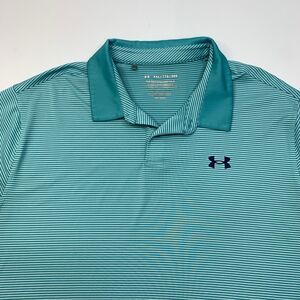 Under Armour Shirt Men XXL Waterfall Blue White Stripe Performance HeatGear Golf
