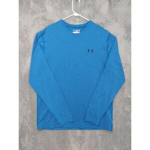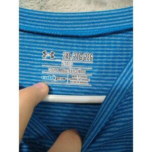 Under Armour Shirt Mens 2XL Blue Striped Long Sleeve Coldgear Fitted Crew Neck