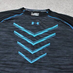 Under Armour Shirt Mens 2XL XXL Black/Blue Twist Flight Heatgear Compression S/S