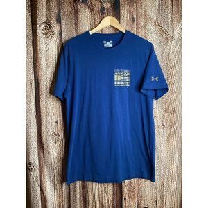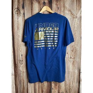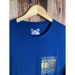 Under Armour Shirt Mens Large Blue HeatGear Stars Stripes Flag Short Sleeve
