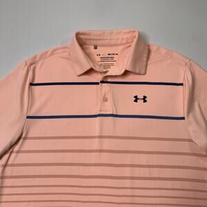 Under Armour Shirt Mens M Medium Bellini Pink Playoff Polo HeatGear Stretch Golf