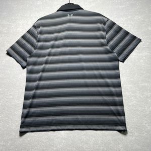 Under Armour Shirt Mens Size Large Gray Striped Short Sleeve Polo Shirt Collared