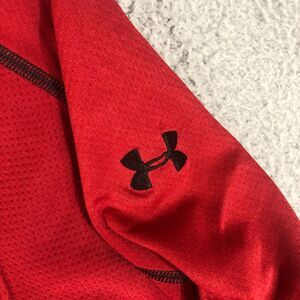 Under Armour Shirt Mens XL Red Pullover Mock Neck 1/4 Zip Logo Long Sleeve