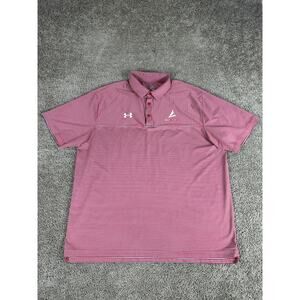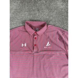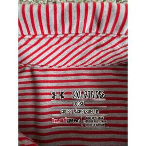 Under Armour Shirt Mens XXL 2XL Red Gray Stripe Loose HeatGear Short Sleeve Polo