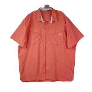 Under Armour Shirt Orange Heat Gear Loose Short Sleeve Button Down Men Size 3XL