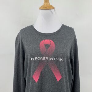 Under Armour Shirt Women L Large Power in Pink Breast Cancer Heatgear LongSleeve