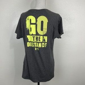 Under Armour Shirt Women Large Grey Semi-Fitted Running Short Sleeve Active Go The Distance