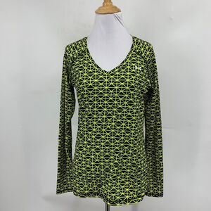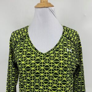Under Armour Shirt Women Small Citrus Black HeatGear Fitted V Neck Raglan Sleeve
