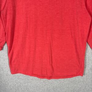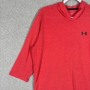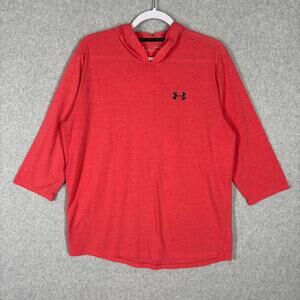 Under Armour Shirt Womens Large Coral ColdGear Threadborne Hooded Thin Loose Pullover Stretch 3/4 Sleeve Activewear Performance Yoga Run Orange