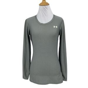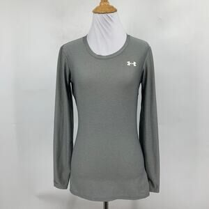 Under Armour Shirt Womens S Small Titanium Fitted Heatgear Long Sleeve Stretch