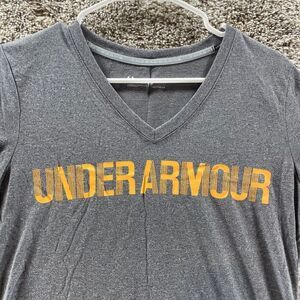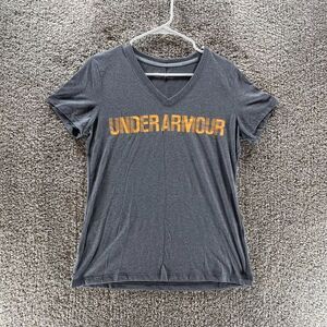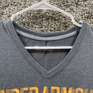 Under Armour Shirt Womens Medium Gray Threadborne Athletic V Neck Ladies Running