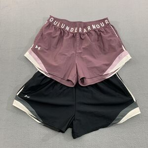 Under Armour Shorts Lot of 2 Womens Large Black Purple Play Up HeatGear